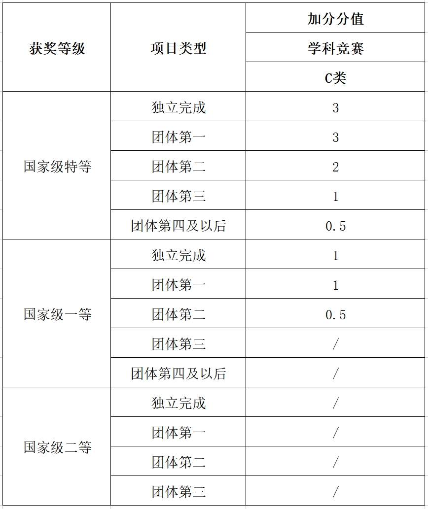 学生积极参赛,特申请该竞赛在保研推免成绩核算时予以加分,具体加分如下表:
